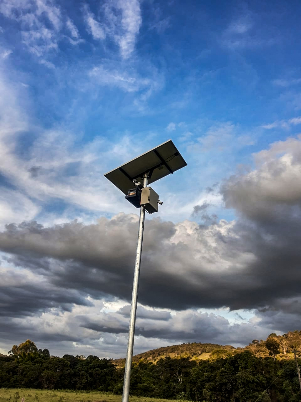 A elétrica Ima além de fornecer os produtos para instalação de energia fotovoltaica ainda conta com uma equipe para fazer a instalação e para nós não existe projeto impossível de ser realizado! Ao lado temos um trabalho de instalação em locais onde a utilização de energia elétrica pode ser inviável, temos esta solução onde temos geração de energia suficiente para manter câmeras, cerca elétrica e equipamentos de internet para transmissão das imagens.